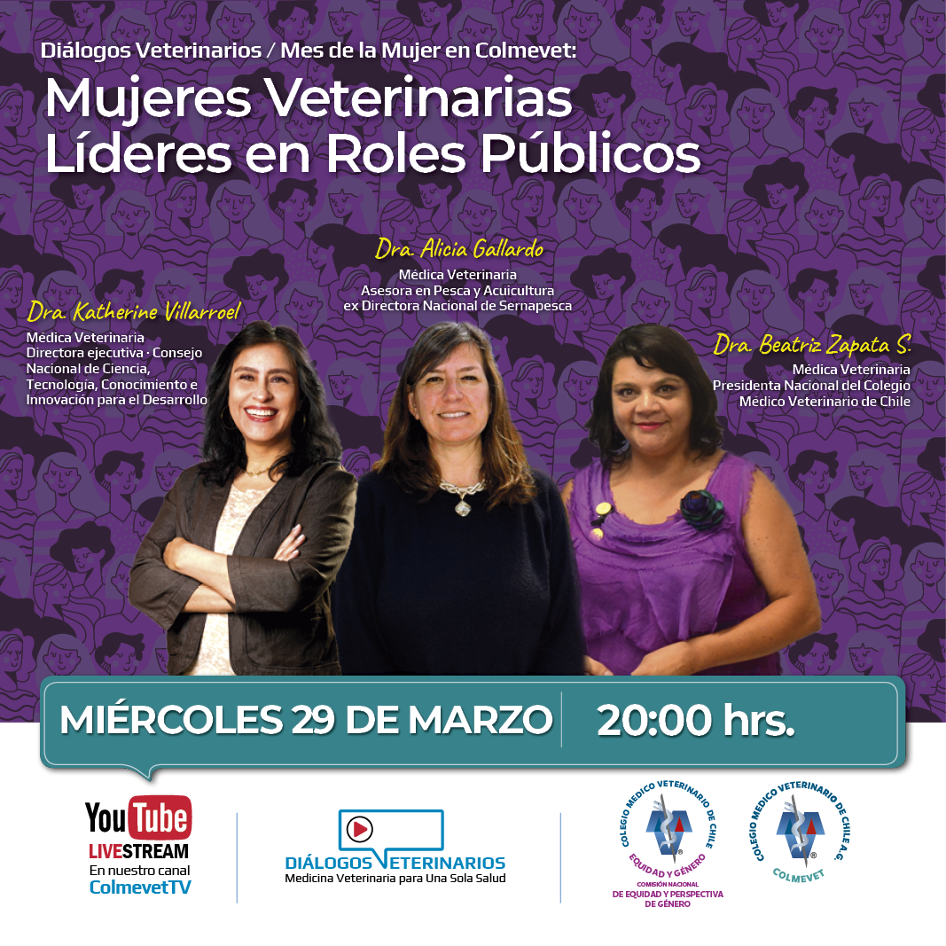 Las y los invitamos a participar de un nuevo ciclo de Diálogos Veterinarios en el marco del Mes de la Mujer en Colmevet. Esta vez con el tema: Mujeres Veterinarias Líderes en Roles Públicos.